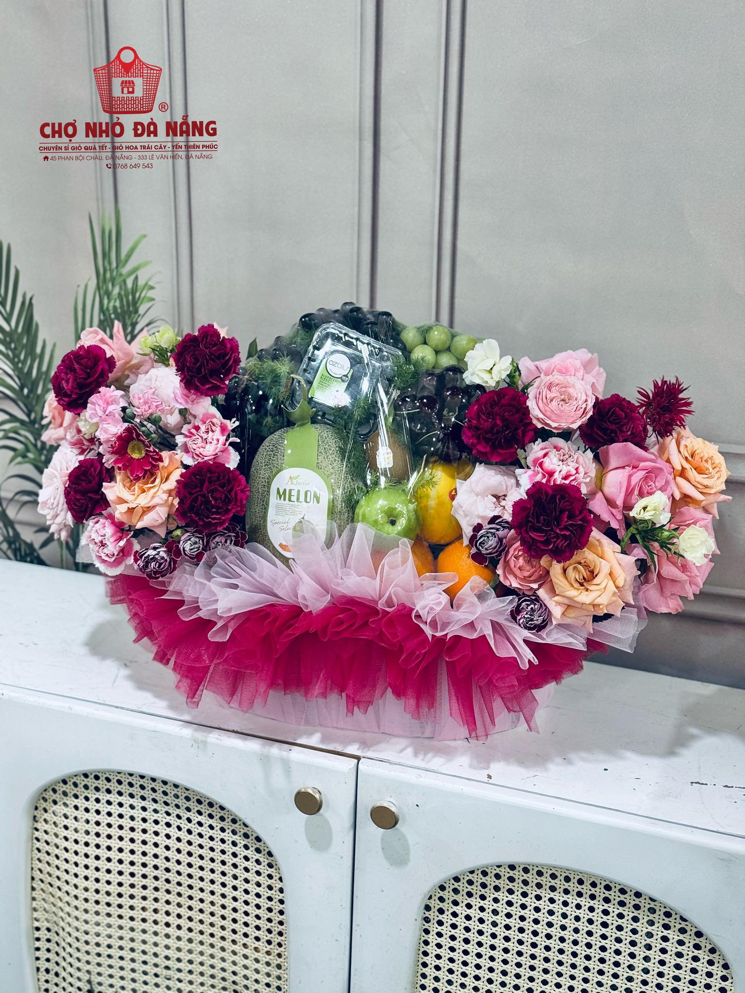 Giỏ hoa trái cây cao cấp được Ms. Ngọc – chuyên gia thiết kế nhiều năm thực hiện hơn 2000+ giỏ hoa trái cây tại Đà Nẵng phối thiết kế giỏ thẩm mỹ, thể hiện tình cảm chân thành gửi đến người nhận.