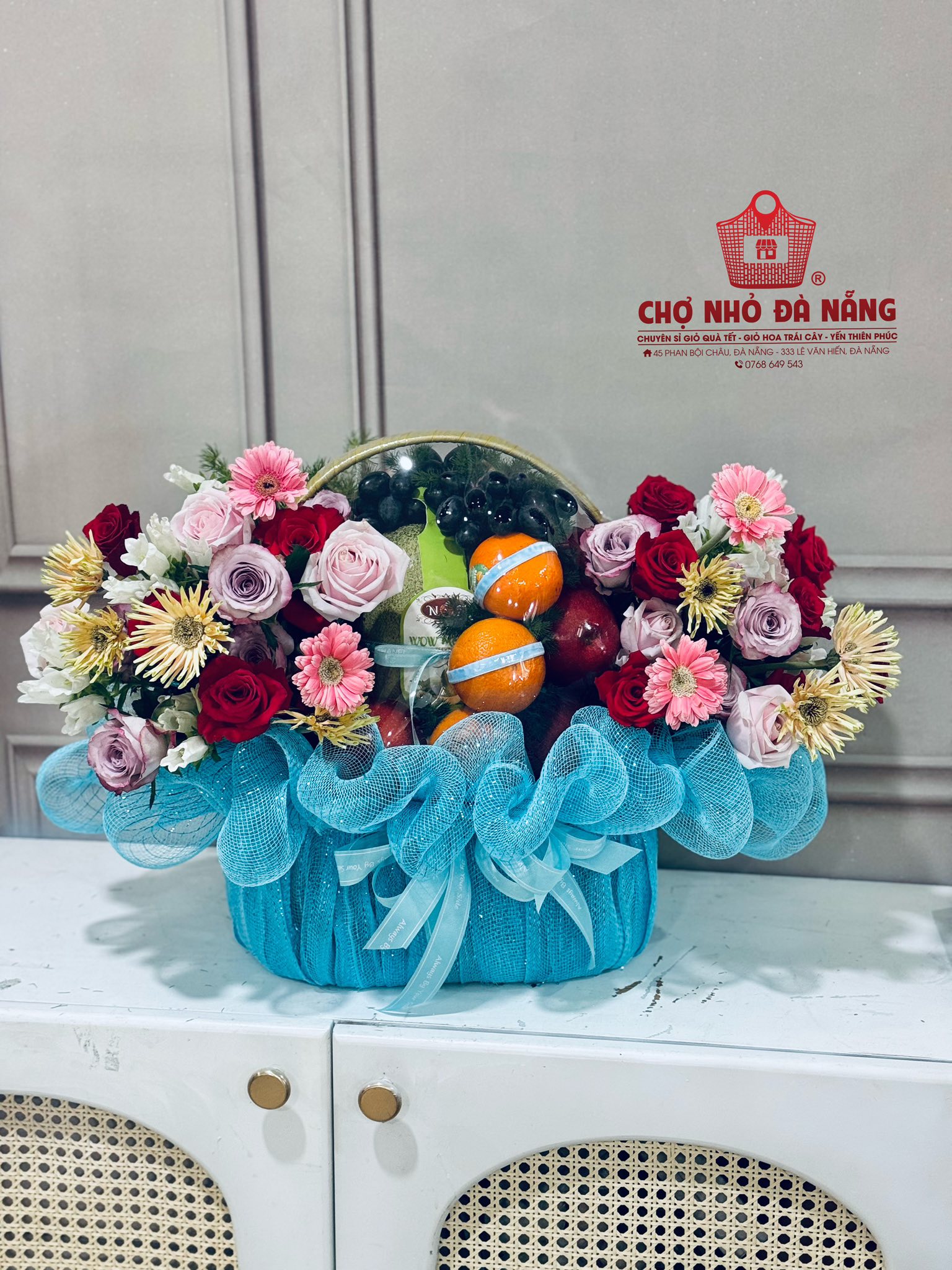 Giỏ hoa trái cây cao cấp được Ms. Ngọc – chuyên gia thiết kế nhiều năm thực hiện hơn 2000+ giỏ hoa trái cây tại Đà Nẵng phối thiết kế giỏ thẩm mỹ, thể hiện tình cảm chân thành gửi đến người nhận.