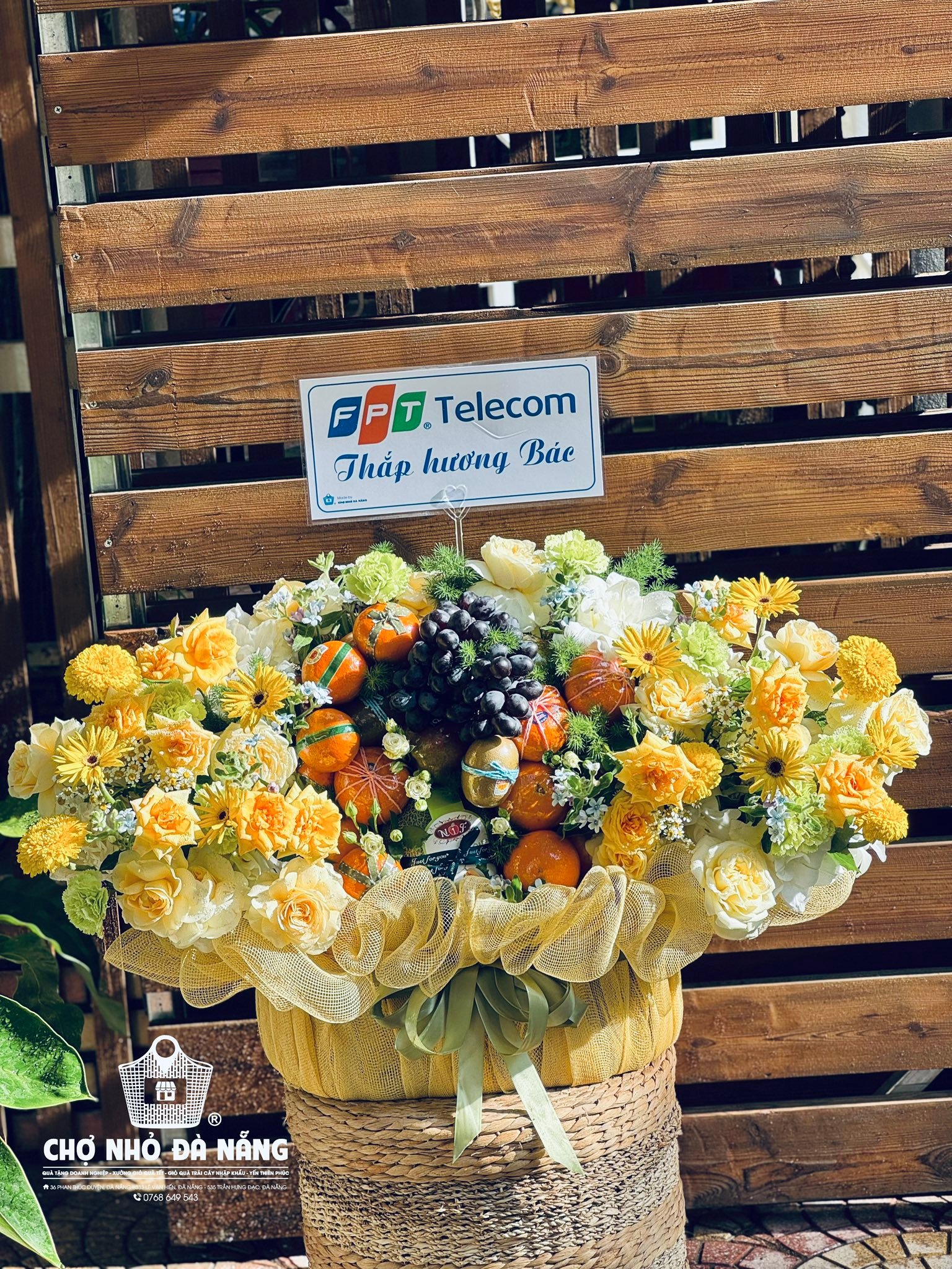 Giỏ hoa trái cây cao cấp được Ms. Ngọc – chuyên gia thiết kế nhiều năm thực hiện hơn 2000+ giỏ hoa trái cây tại Đà Nẵng phối thiết kế giỏ thẩm mỹ, thể hiện tình cảm chân thành gửi đến người nhận.