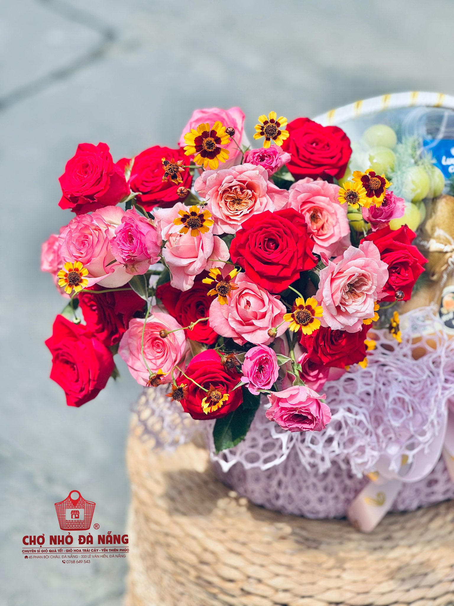 Giỏ hoa trái cây cao cấp được Ms. Ngọc – chuyên gia thiết kế nhiều năm thực hiện hơn 2000+ giỏ hoa trái cây tại Đà Nẵng phối thiết kế giỏ thẩm mỹ, thể hiện tình cảm chân thành gửi đến người nhận.