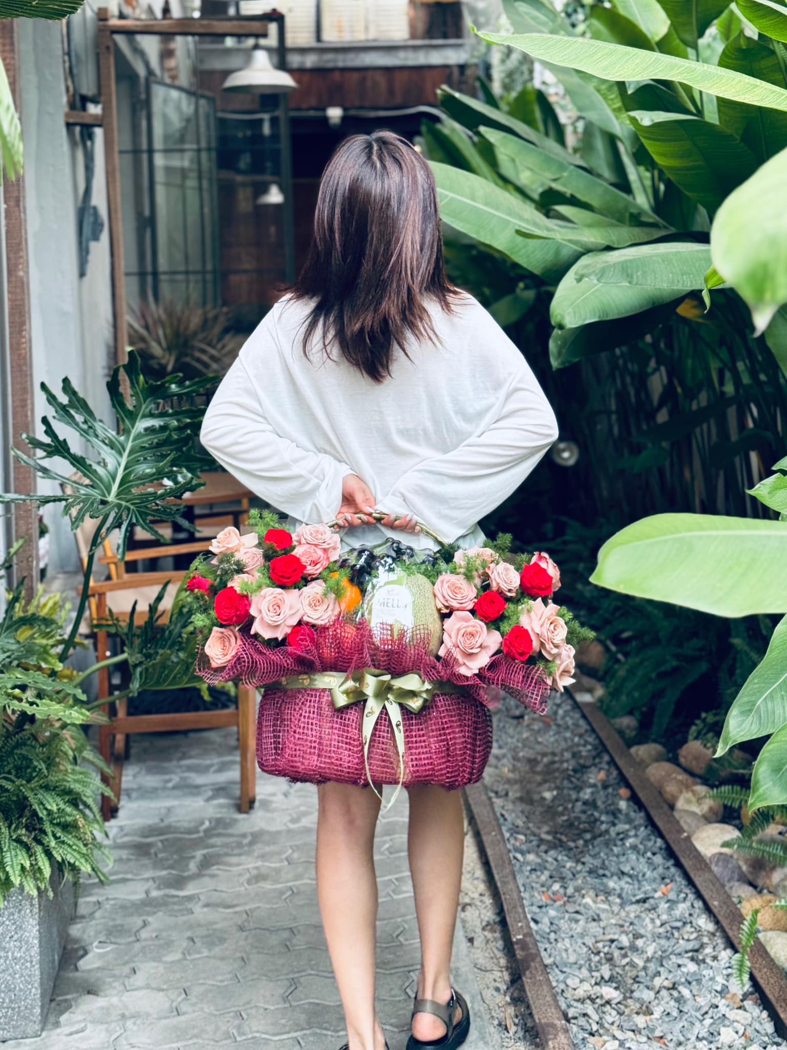 Giỏ hoa trái cây cao cấp được Ms. Ngọc – chuyên gia thiết kế nhiều năm thực hiện hơn 2000+ giỏ hoa trái cây tại Đà Nẵng phối thiết kế giỏ thẩm mỹ, thể hiện tình cảm chân thành gửi đến người nhận.