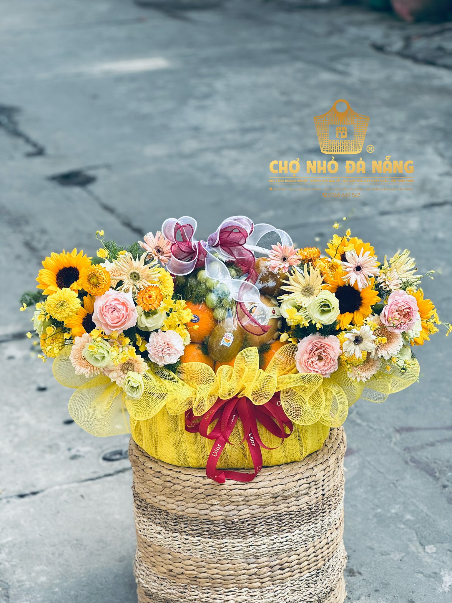 Giỏ hoa trái cây cao cấp được Ms. Ngọc – chuyên gia thiết kế nhiều năm thực hiện hơn 2000+ giỏ hoa trái cây tại Đà Nẵng phối thiết kế giỏ thẩm mỹ, thể hiện tình cảm chân thành gửi đến người nhận.